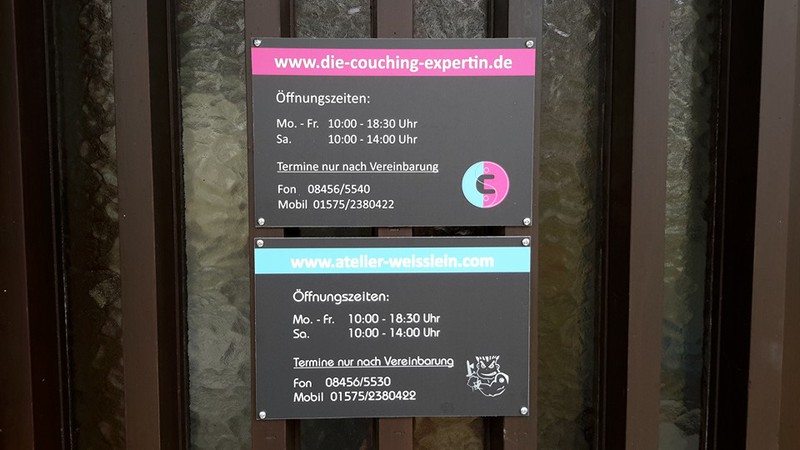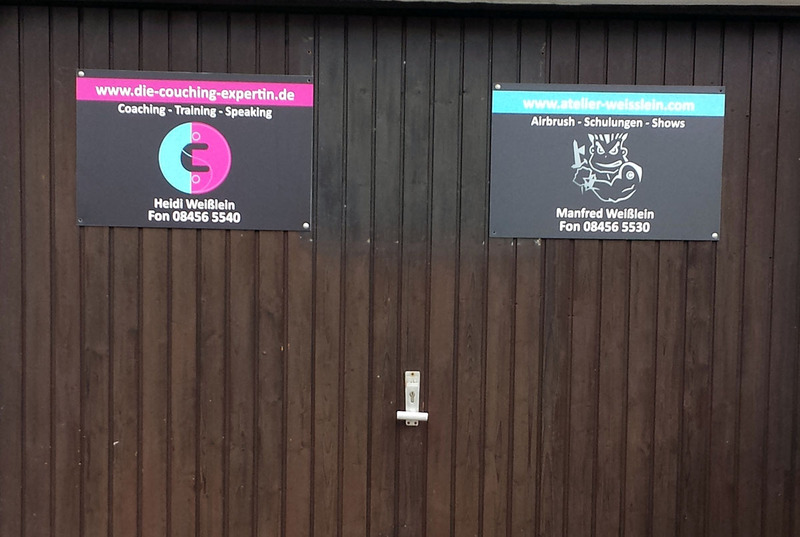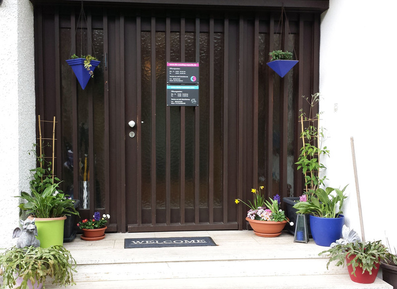 Der Straße links folgen, dann ist meine Coaching-Praxis das dritte Haus auf der rechten Seite (Ihr findet an der Garage die Schilder meiner Coaching-Praxis, noch als "CoUching-Expertin" - und die des Atelier Weisslein).
